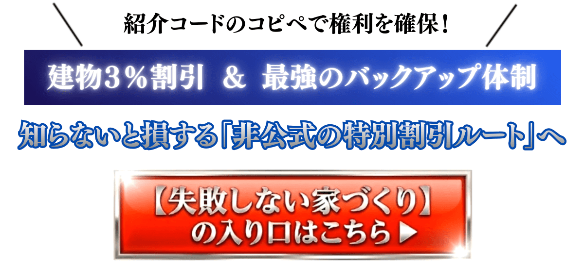 今回用意されているルートでは、オーナーの信頼を介した特別な対応により、建物本体価格で3%以上の割引が期待できます。